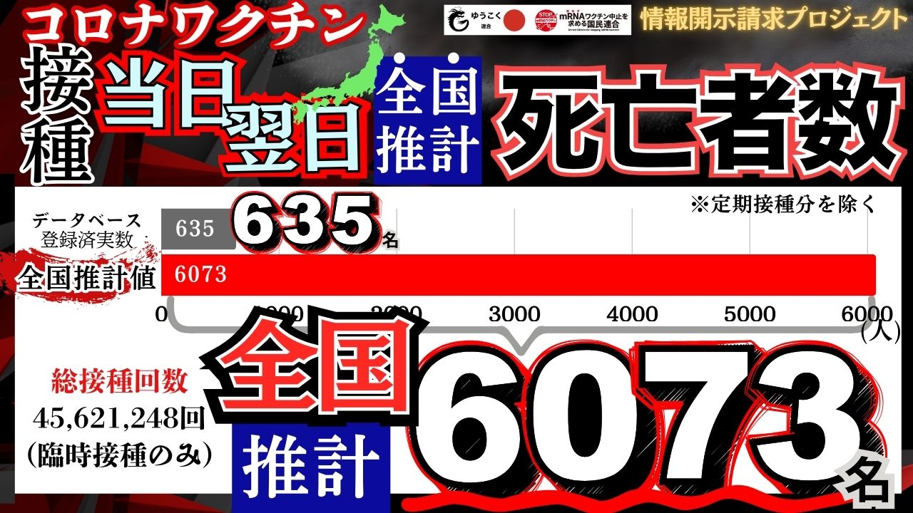 情報開示請求プロジェクトにより、コロナワクチンを接種して当日・翌日に亡くなった方は643名であることをxにて投稿した際、大変な反響をいただきました。