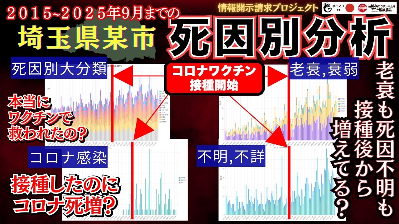 開示請求プロジェクトとは別に、とあるサポーターさんが埼玉県某市において全死因の開示をしてもらいました。接種の有無はわかりませんが、全死因をいろいろな方向からグラフ化すると、目に見えてわかる変化もあるようです。